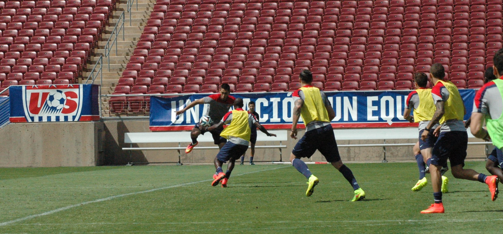 The U.S. National Team appears much more diverse on the field than it does on its executive board, a trait MLS and United Soccer Coaches also appear to follow. The men’s team (shown here warming up at Stanford University under the direction of head coach Jürgen Klinsmann — who won the 1990 World Cup playing for Germany — weeks before the 2014 Word Cup began in Brazil) made it all the way to the Round of 16 in 2014 before its brutalization by Belgium. The team did not qualify for the tournament in 2018. Some suggest that the lack of diversity and opportunity in American soccer is to blame for our lack of a World Cup trophy (from our men). Photo Credit: Rebecca Townsend