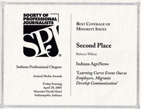 SPJ Minority Issues award Published October 15, 2017 at 2122 × 1646 in Professional Development Timeline ← Previous Next → (Even though I’d been married for almost 5 years at this point, I still used by maiden name at AgriNews because I’d started with the company as Wilson and I wanted continuity in my byline.)